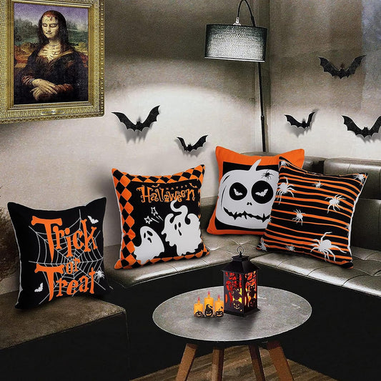BLEUM CADE Halloween Decorations for Home Throw Pillow Covers 18 x 18 inch Pumpkin Throw Pillowcases Set of 4,Trick or Treat Halloween pillows