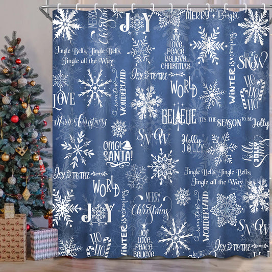 Ikfashoni 13pc Christmas Shower Curtain with Hooks, Blue Snowflake Xmas Bathroom Decor, 70"X69"
