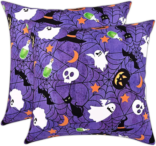 BLEUM CADE Halloween Decorations Outdoor Throw Pillow Covers Set of 2, Pumpkin Ghost Throw Pillowcases 18 x 18 inches,Purple Cushion Pillow Covers