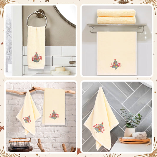 Ikfashoni 2 Pack Christmas Hand Towel for Bathroom, Embroidered Snowman White Scroll Cotton Towels
