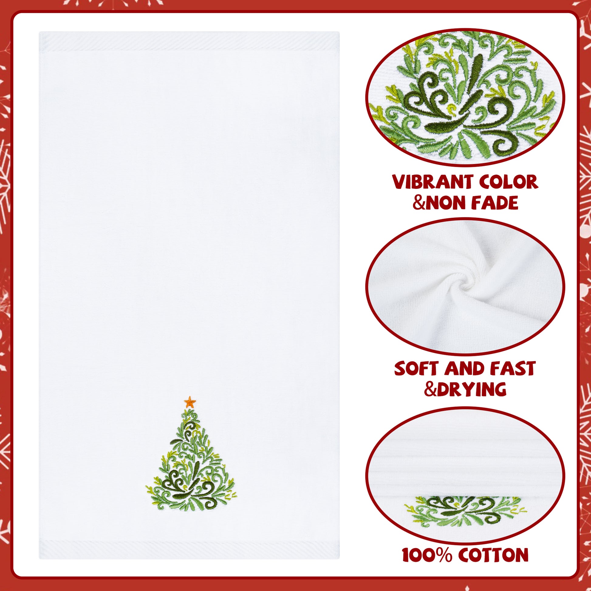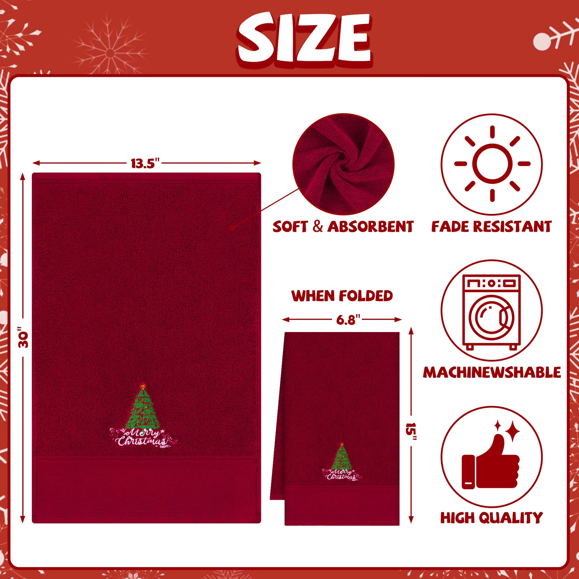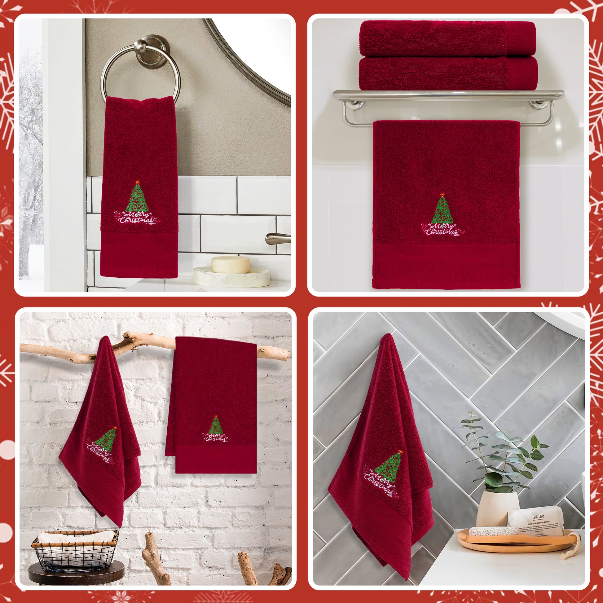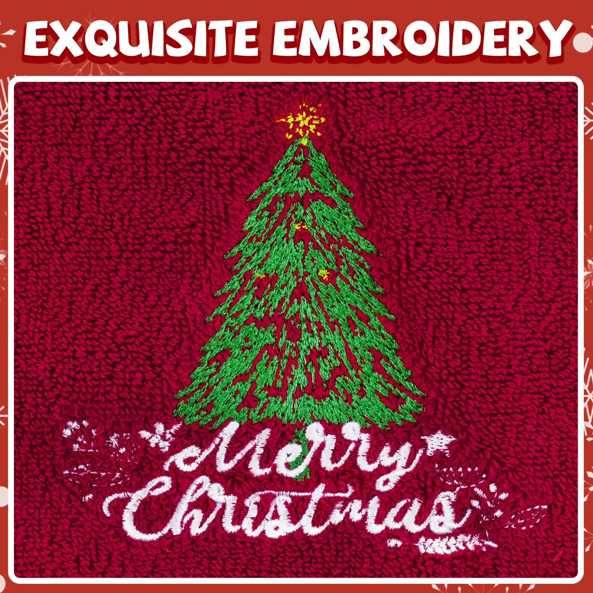 Ikfashoni 2 Pack Christmas Hand Towel for Bathroom,Embroidered Christmas Tree Red Scroll Cotton Towels