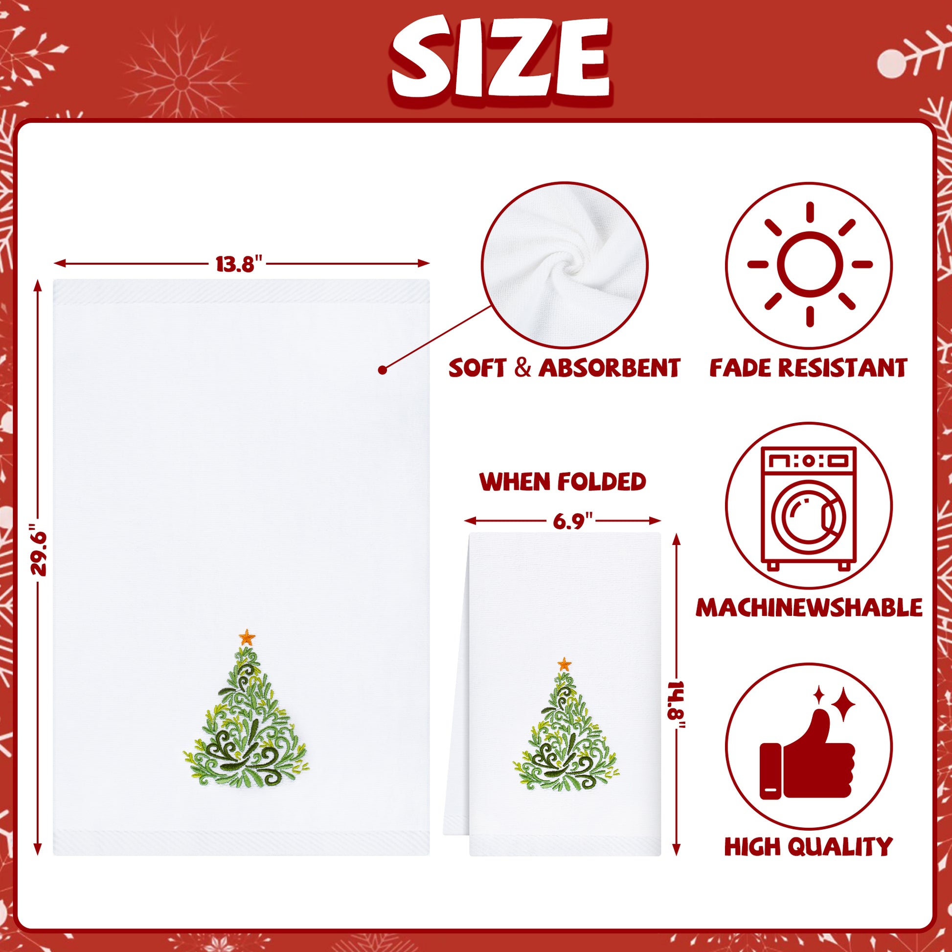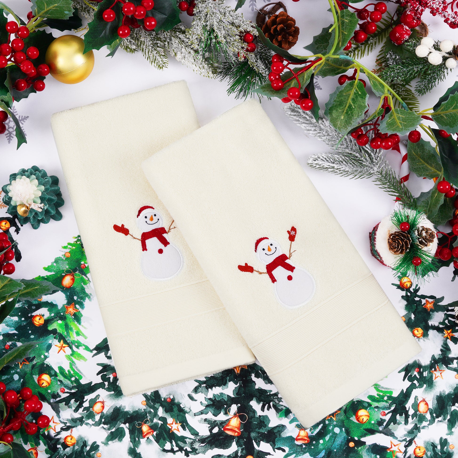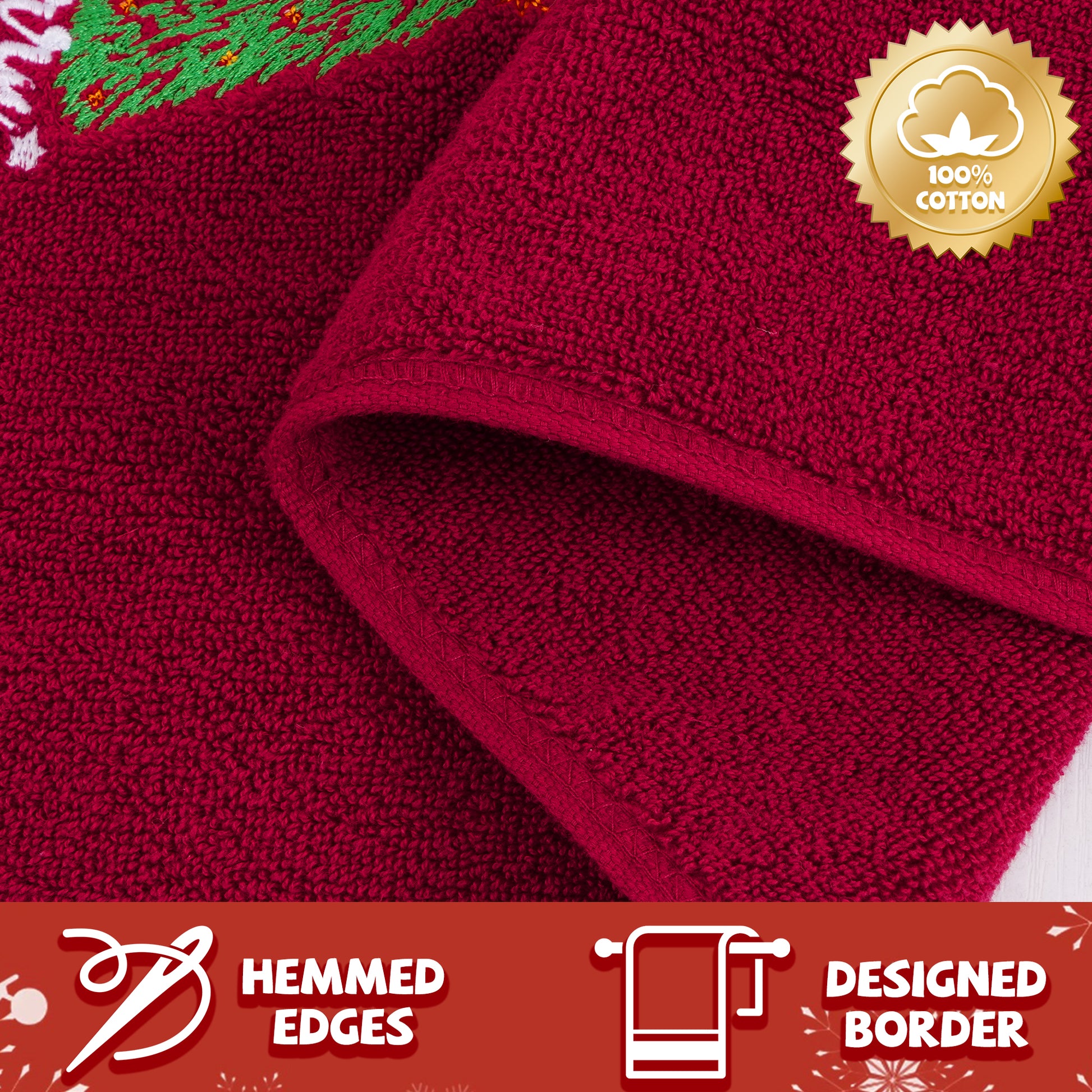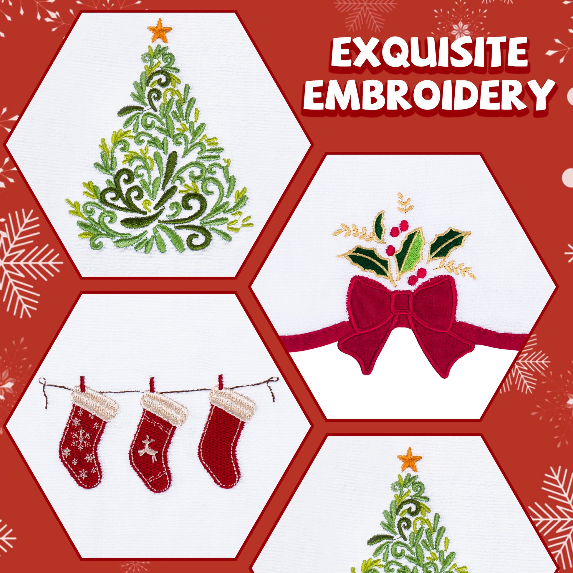 Ikfashoni 2 Pack Christmas Hand Towel for Bathroom,Embroidered Christmas Tree Red Scroll Cotton Towels
