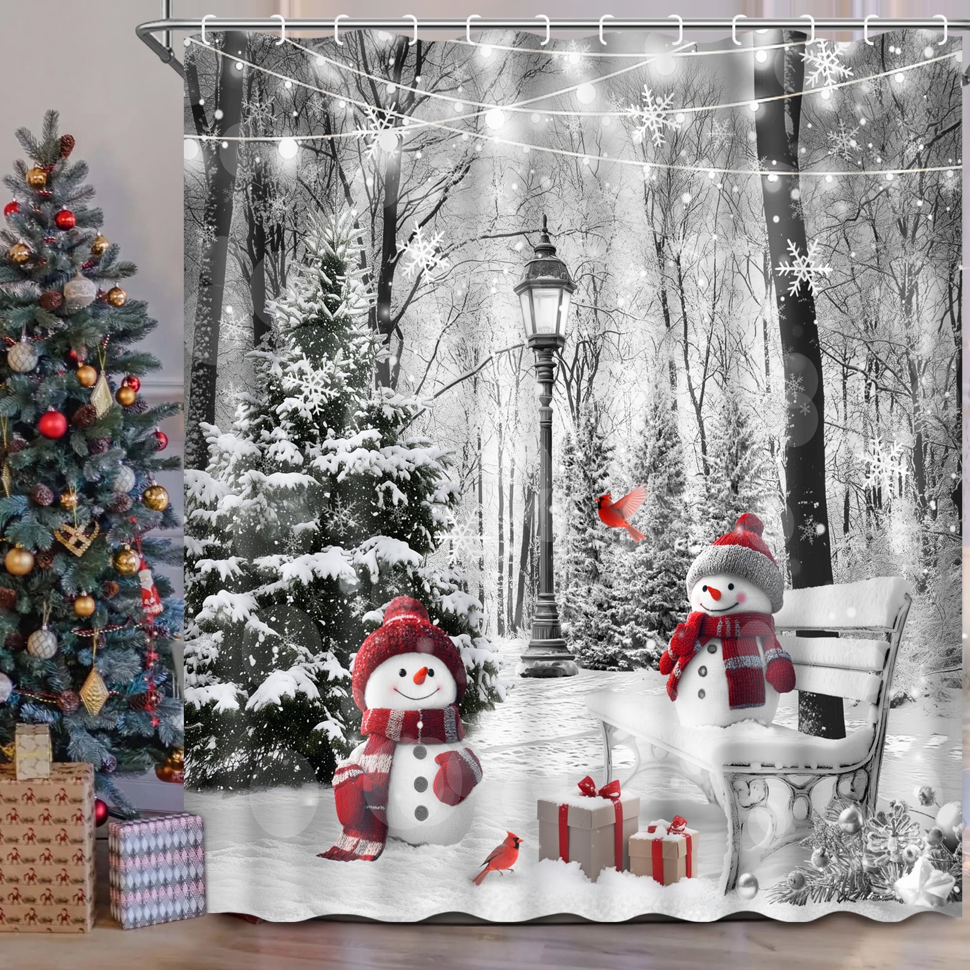 Ikfashoni Christmas Shower Curtain with Hooks, Winter Snowman Waterproof Bathroom Curtains, 72"X72"